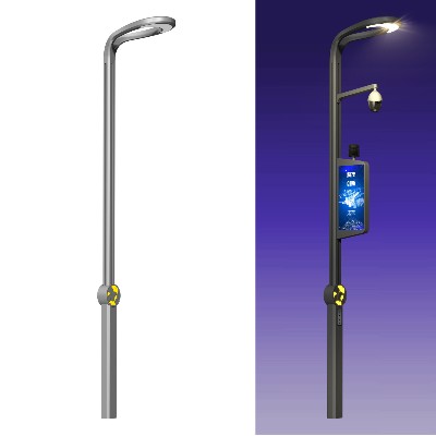 菲尼特智能智慧灯杆不仅拥有基本的智能照明功能,还集信息发布功能、信息采集功能、信息传输和控制功能、绿色新能源充电、环境监测等于一身,通过配备的户外小间距LED显示屏、摄像头、无线WiFi,可实现 LED 路灯照明、LED 显示屏显示、通讯与控制、 视频监控、人/物监测、USB应急充电和紧急呼叫等不同应用。